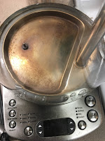 so, the bf bought a light to put under the cabinet where I keep my kettles, and holy shit my kettle looked gross.